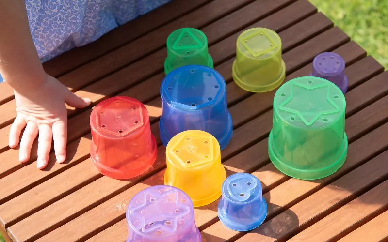Aquests gots apilables són un imprescindible en qualsevol aventura amb petits. Són lleugers, ocupen poc espai i es converteixen en mil coses segons el moment: una torre, recipients per recollir tresors naturals, motlles de terra o sorra, i fins i tot gotets per jugar amb aigua si hi ha una font a prop.
