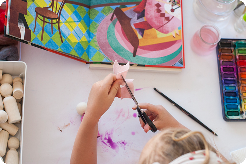 El arte de proceso se centra en el proceso de creación y no en el resultado final. Una invitación de arte es un espacio preparado con cariño, con materiales interesantes para jugar y crear. Para mí es mágico cuando el niño tiene la posibilidad de crear algo que le puede servir después en su juego. Eso le facilita establecer una conexión con ese objeto. Además, le permite darse cuenta de que puede crear lo que necesite para construir su mundo. Este es un mensaje muy poderoso.