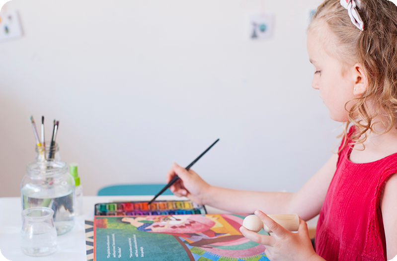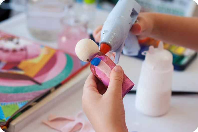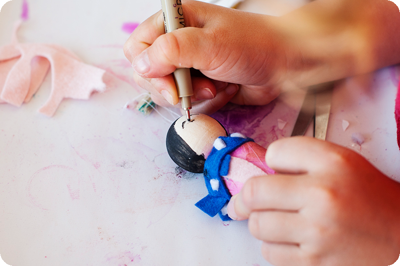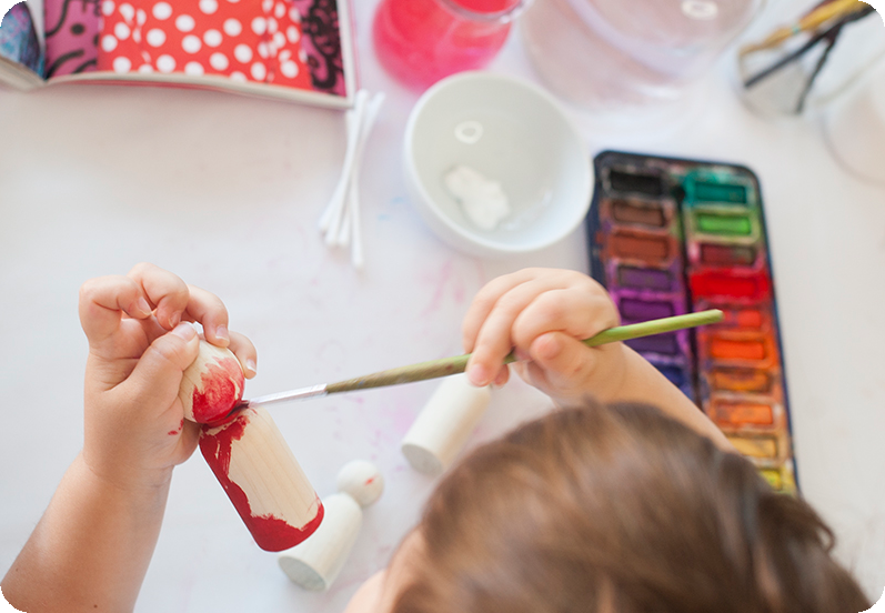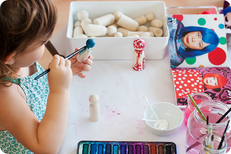 No hay cosa que me guste más que las invitaciones de arte con un propósito. En este caso, pintar muñecos de madera (“peg dolls”) nos da como resultado un juguete, regalándole a los niños horas y horas de juego, durante la creación y después.