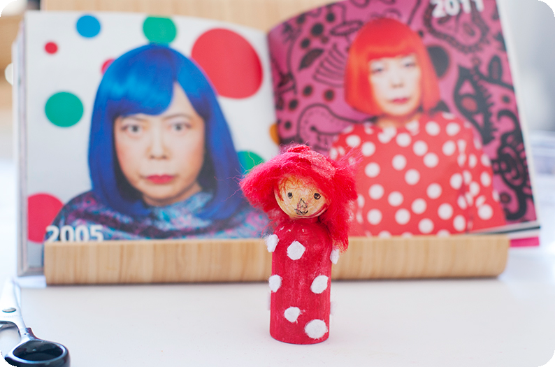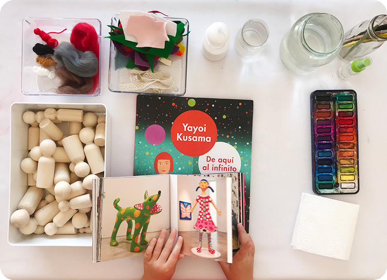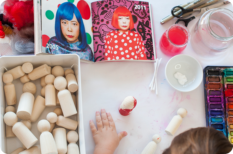 Cuando le pregunté a Olivia (6 años) qué mujer artista quería crear, ella tenía muy claro por cual empezar: Yayoi Kusama. Yayoi es una artista japonesa, de 91 años de edad, a la que se conoce como la princesa de los lunares, porque su sello característico consiste en llenar sus obras de puntos. Al acabar a Yayoi, quiso hacer a Sonia Delaunay, una artista que vivió el arte más allá de los cuadros y que lo integró al mundo del diseño y de la moda. Emma (3 años) se unió a Olivia más tarde y quiso pintar también a Yayoi, su favorita desde que era un bebito de unos pocos meses. Sé que seguiremos con este juego mucho tiempo y que irán creando muchas más. También estoy segura de que estas artistas inspirarán el juego de mis pequeñas cada día.