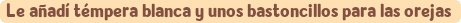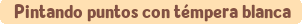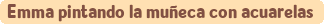 Cuando estaba acabando de pintar la muñeca, añadí un recipiente con tempera blanca de alta pigmentación y unos bastoncillos para las orejas, para que le fuera fácil crear los puntos del vestido. De esta forma pude adaptar la propuesta a sus necesidades y estado evolutivo. Esta parte le encantó.