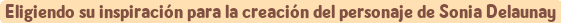 Después Olivia quiso crear a Sonia Delaunay. Primero observó fotos de ella y luego decidió basarse en una ilustración de un cuento para crear su personaje.