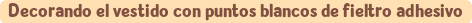 Luego Olivia decidió recortar círculos de fieltro adhesivo para decorar el vestido rojo.