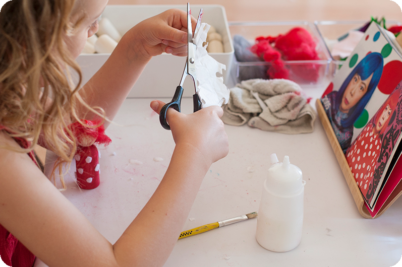 Luego decidió crear los brazos de Sonia con fieltro. Los recortó y los pegó con cola blanca.